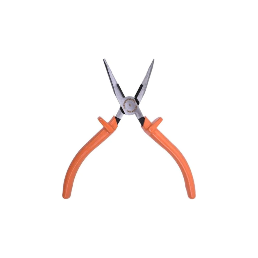 O Alicate de Bico Meia Cana 6 polegadas Tramontina Pró é a ferramenta ideal para profissionais da elétrica e manutenção. Fabricado em aço cromo vanádio forjado, oferece maior resistência e durabilidade. Sua cabeça e articulação polidas garantem precisão no manuseio, enquanto o corpo é submetido à têmpera total e o gume de corte à têmpera por indução, o que proporciona maior vida útil à ferramenta. O modelo conta com isolação elétrica de 1.000 V CA, sendo indicado para uso em trabalhos com eletricidade, em conformidade com as normas NBR 9699 e NR 10, além de seguir a norma DIN ISO 5745. Um alicate seguro, confiável e robusto, indispensável na maleta de qualquer eletricista ou técnico.