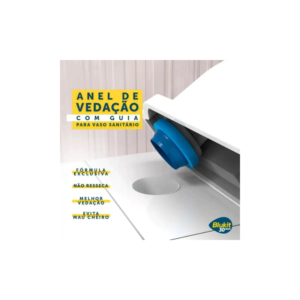 O anel de vedação para vaso sanitário Blukit Smart é uma solução prática, segura e eficiente para a vedação entre a bacia sanitária e a tubulação de esgoto. Fabricado em borracha butílica de alta qualidade, ele garante vedação total, evitando vazamentos de líquidos e o mau cheiro. Seu guia plástico incorporado facilita o alinhamento durante a instalação e possui geometria otimizada para não interferir no fluxo de água e detritos. Esse anel de vedação com guia é compatível com todos os modelos de vasos sanitários, incluindo versões convencionais e com caixa acoplada. Durável e confiável, o produto não resseca nem racha com o tempo, assegurando desempenho contínuo e vedação eficiente.