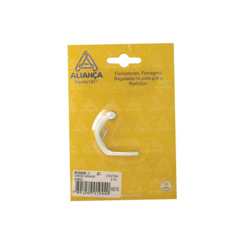O cabide grande da Aliança, fabricado em Zamac com acabamento branco, é ideal para quem busca funcionalidade com um visual discreto e moderno. Suporta até 4 kg, sendo perfeito para pendurar casacos, chaves, mochilas, toalhas ou guarda-chuvas em diversos ambientes da casa. Versátil e resistente, é indicado para uso em banheiros, lavanderias, corredores e áreas internas. A instalação é simples e segura com fixação por parafusos, que acompanham o produto.
