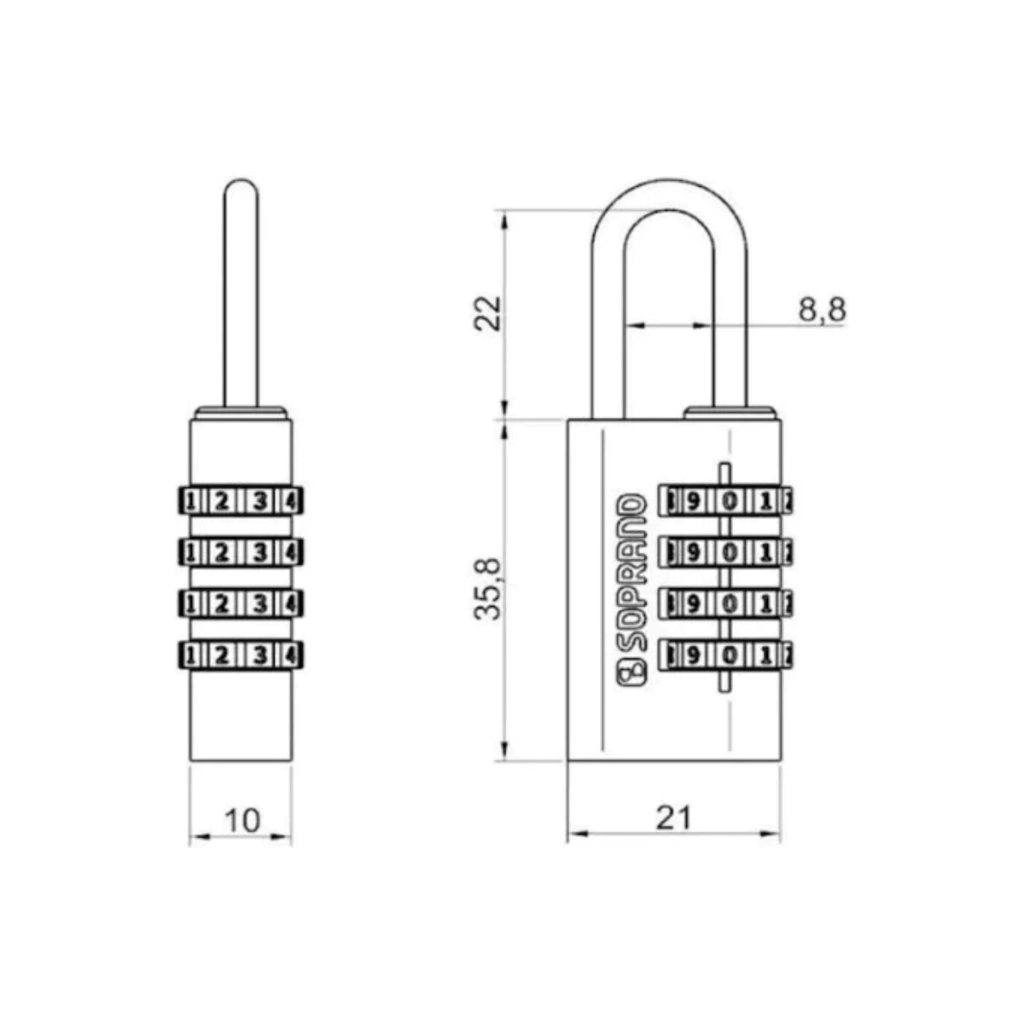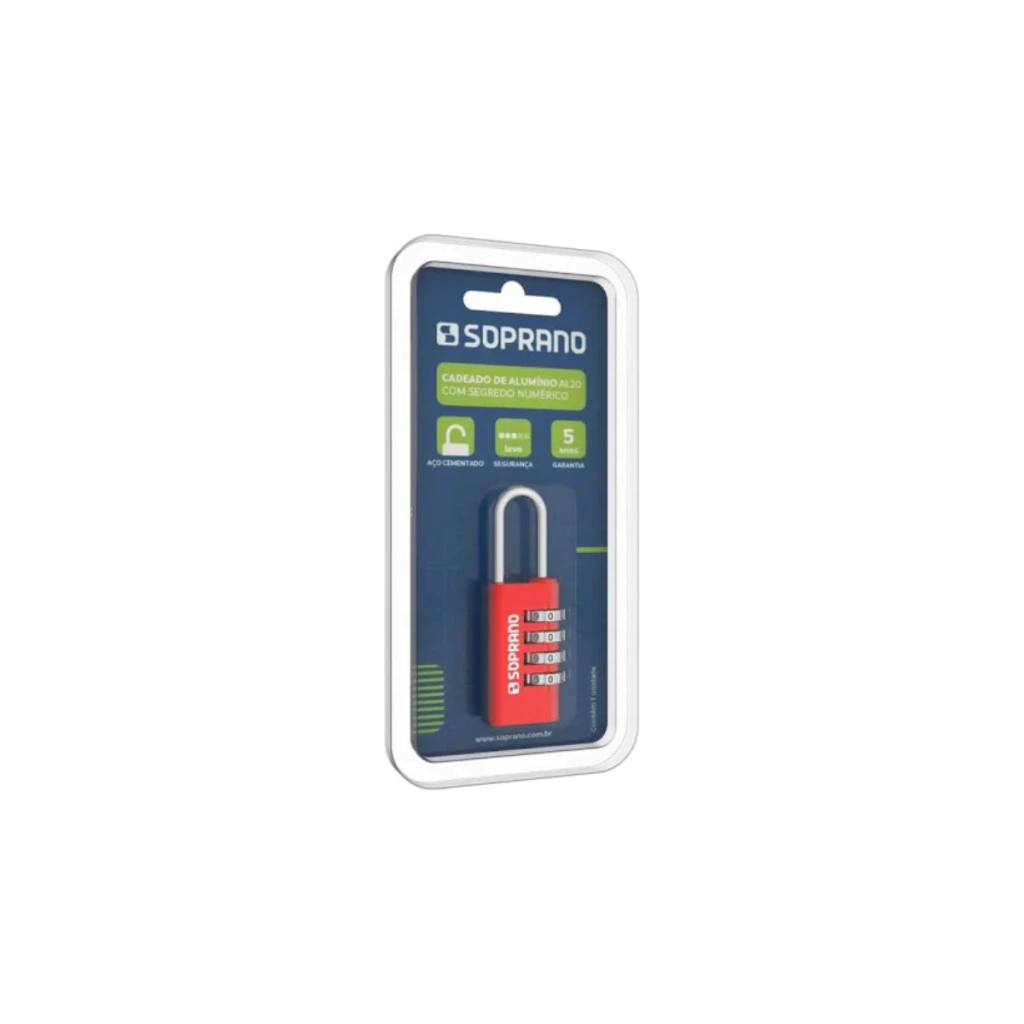 O Cadeado Soprano AL20 de 20 mm oferece combinação entre leveza e praticidade com seu corpo em alumínio anodizado e gancho em aço cementado cromado. O segredo numérico de 3 dígitos permite até 1.000 combinações, dispensando o uso de chaves e facilitando o dia a dia em armários, malas, mochilas e pequenos cofres. Compacto (≈57,8 × 21 mm), resistente à água e testado conforme norma NBR 15271, oferecendo tranquilidade mesmo em ambientes úmidos.