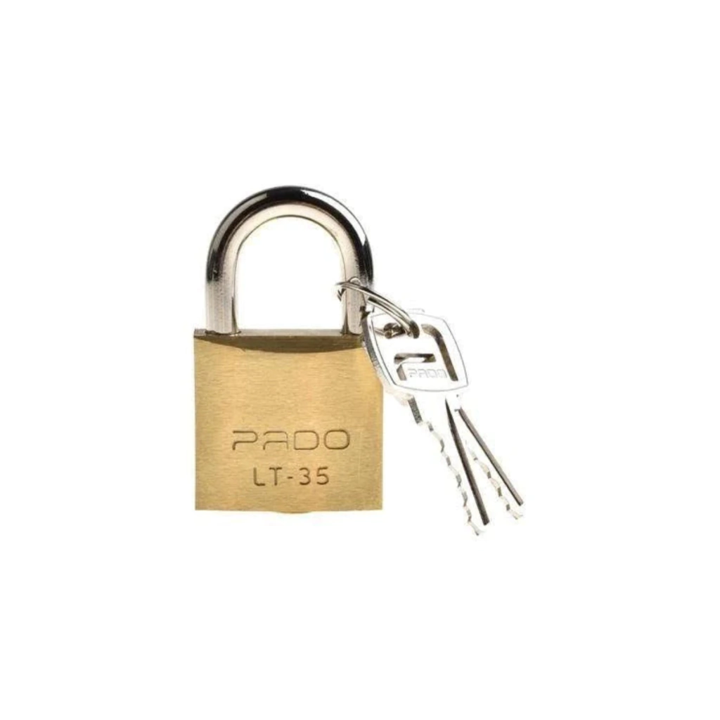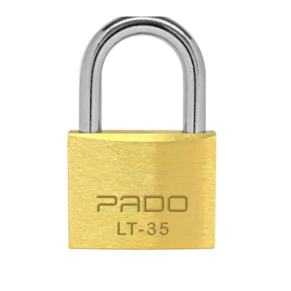 O Cadeado Pado LT‑35 de 35 mm combina corpo em latão maciço com haste de aço cementado, oferecendo resistência confiável contra corte e corrosão. Ideal para proteger armários, caixas de ferramentas, correntes e pequenos portões. Sua trava oblíqua combina segurança e facilidade de uso, acompanhada de duas chaves em latão. Atende à norma ABNT NBR 15271 para segurança leve a média. Compacto, com cerca de 64 mm de altura e 13,5 mm de espessura, o modelo LT‑35 pesa aproximadamente 160 g, ideal para uso diário, com lubrificação ocasional de óleo mineral.