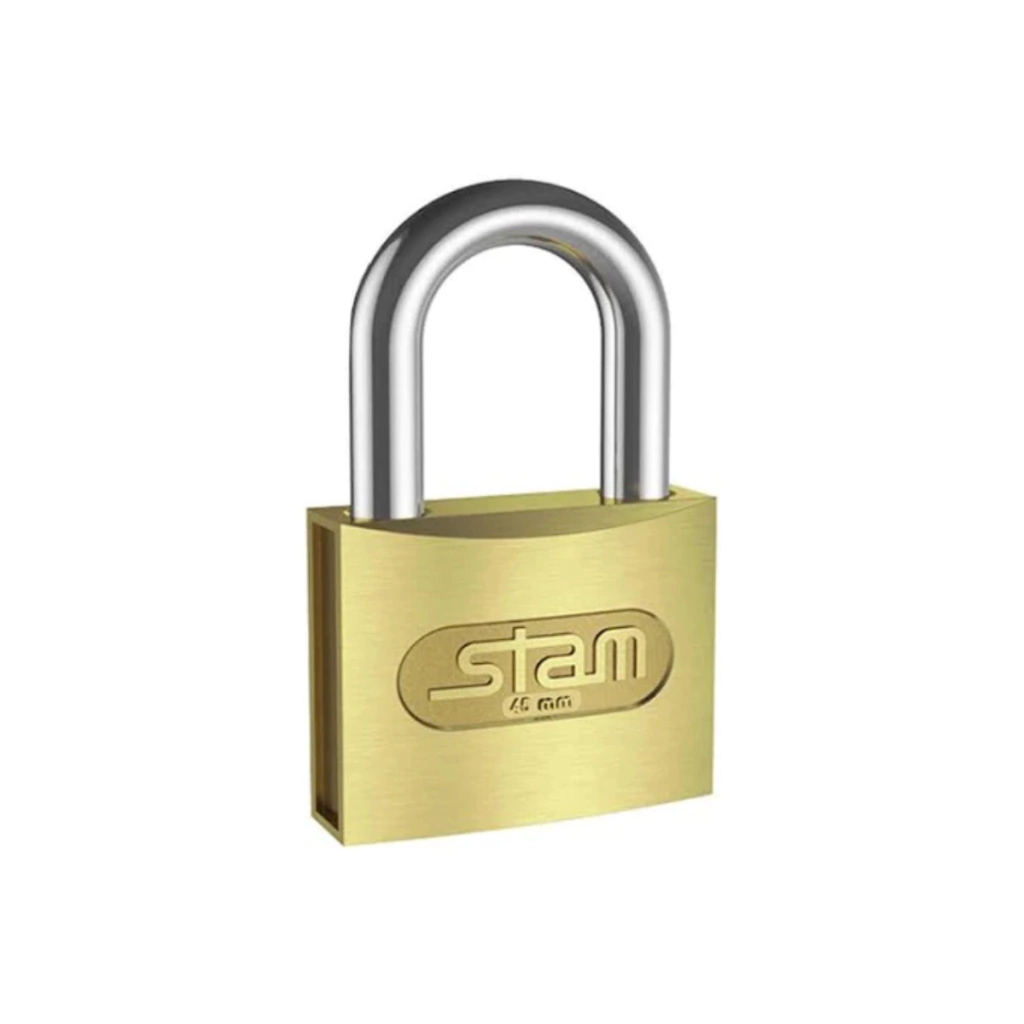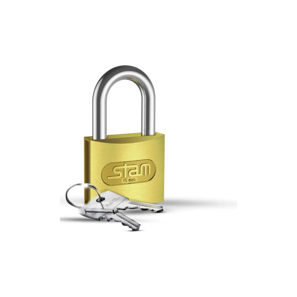 O Cadeado Stam 45 mm em latão maciço oferece robustez e durabilidade para uso em portões, armários, malas, mochilas e equipamentos, além de ambientes residenciais e comerciais. Corpo e tambor em latão garantem resistência à corrosão, enquanto a haste de aço ABNT 1010/1020, cementada e cromada, adiciona segurança contra cortes e arrombamentos. Equipado com mola de aço inoxidável e sistema de pinos tipo carretel antigazua, este cadeado de segurança nível 5 oferece alta proteção. Inclui duas chaves de latão niqueladas e possui orifício de drenagem que impede acúmulo de água, prolongando sua vida útil.