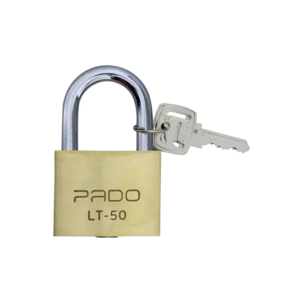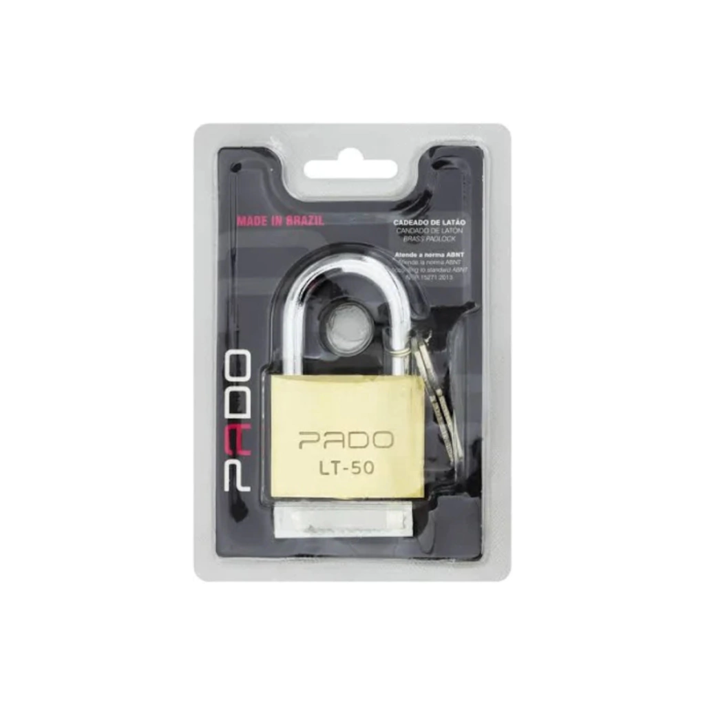O Cadeado Pado LT‑50 de 50 mm oferece construção robusta com corpo em latão maciço e haste em aço inox cementado por meio de processo de cementação, aumentando resistência a cortes e arrombamentos. É entregue com duas chaves de latão, sistema de trava oblíqua e mecanismo de tambor de pinos, garantindo segurança confiável para correntes, portões, armários e pequenas dependências. Atende à norma ABNT NBR 15271, com aproximadamente 78 mm de altura, haste Ø 7,95 mm e peso estimado de 230 g. Recomendado lubrificar com óleo mineral periodicamente para manter a vida útil.