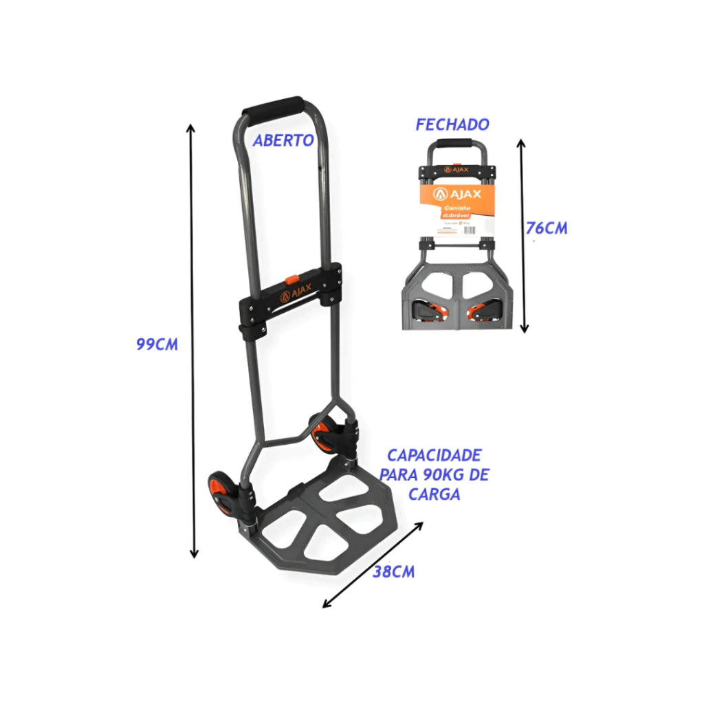 Produzido em aço resistente, suporta até 90 kg, oferecendo durabilidade e segurança no transporte de caixas, volumes e mercadorias em geral. As rodas de alta resistência proporcionam maior mobilidade e estabilidade durante o uso.