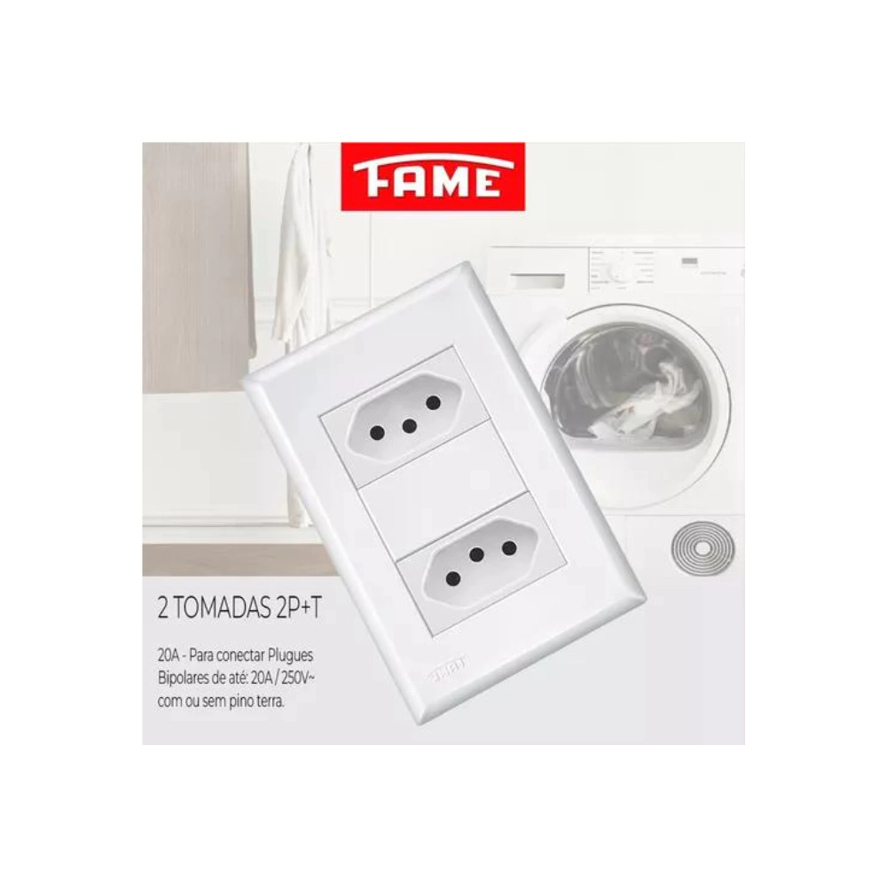 O Conjunto com 2 Tomadas 2P+T 20A da FAME é indicado para instalações que exigem alimentação simultânea de equipamentos de alto consumo. Com padrão brasileiro NBR 14136, oferece segurança e eficiência em ambientes como cozinhas, lavanderias e oficinas. Fabricado em material termoplástico antichama, garante encaixe firme e instalação prática, sendo compatível com diversos eletrodomésticos de maior potência.