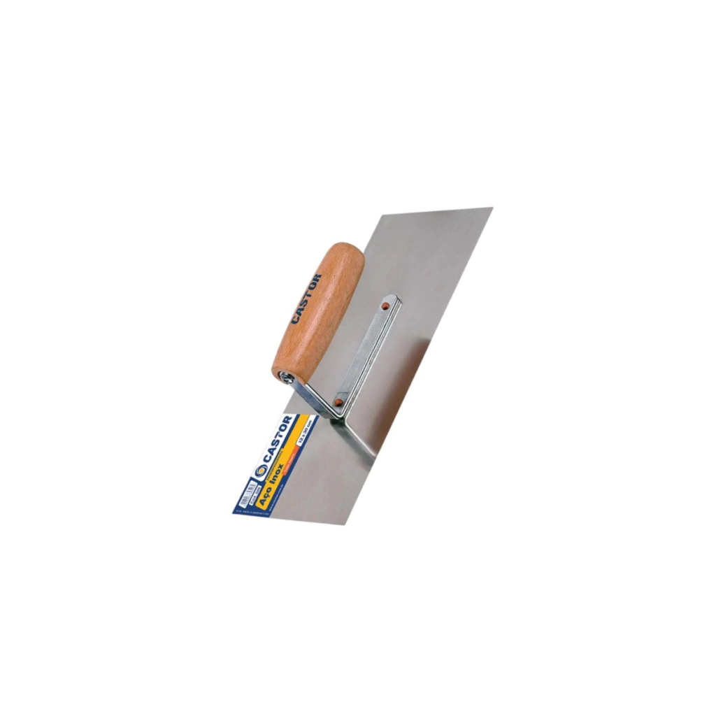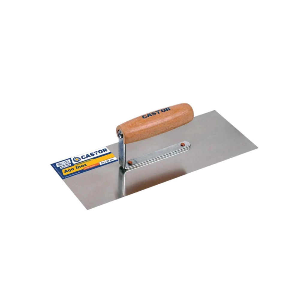 A Desempenadeira de Aço Inox Castor 12×30 cm é ideal para aplicação e nivelamento de gesso, massas corridas, resinas e argamassas. Sua lâmina lisa em aço inox com rebites reforçados proporciona resistência à oxidação e uso intenso. O cabo Aberto em madeira oferece conforto e firmeza durante a aplicação, resultando em acabamento uniforme com maior durabilidade para profissionais.