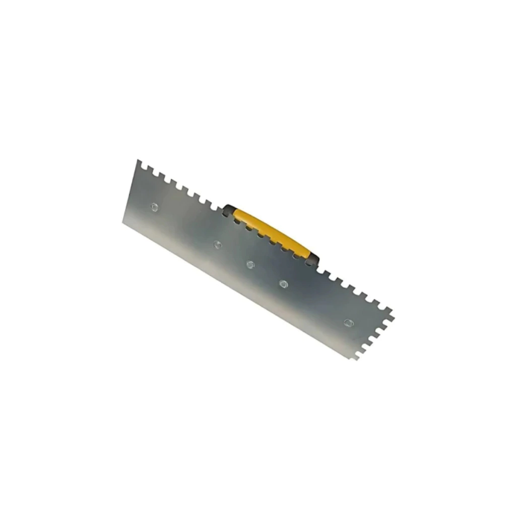 A Desempenadeira Aço Prática Dentada 10x35cm Dente em "U" – Castor é ideal para aplicação de argamassas colantes em revestimentos cerâmicos, porcelanatos e pedras naturais. O formato dentado em "U" proporciona melhor rendimento e aderência, garantindo a espessura adequada da argamassa e uniformidade na aplicação. Fabricada em aço resistente, possui cabo plástico ergonômico, que assegura firmeza, segurança e conforto no manuseio. Uma ferramenta prática e essencial para profissionais da construção e assentamento de revestimentos.