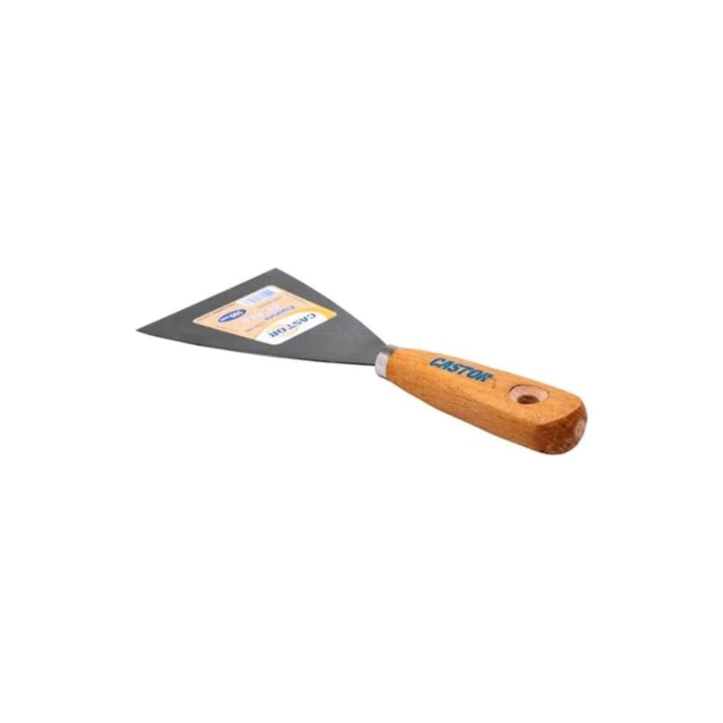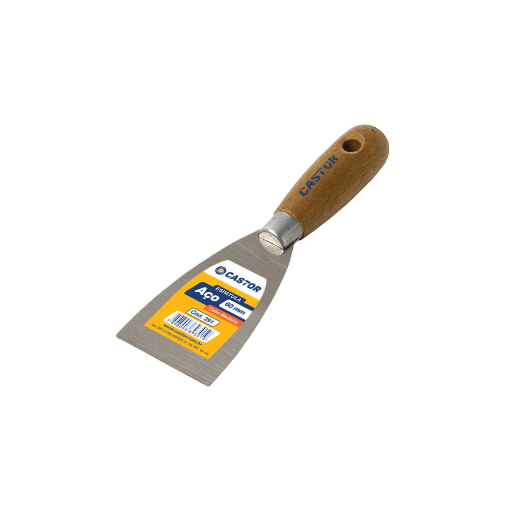 A Espátula Multiuso Castor de 60mm com cabo de madeira da série 390 é uma ferramenta essencial para profissionais da construção civil e pintura. Fabricada com lâmina de aço flexível e resistente, oferece excelente desempenho no preparo, limpeza e revestimento de superfícies. Versátil, é ideal para aplicação de argamassas, massas (fina, grossa, corrida), colas, resinas (acrílicas, vinílicas), texturas e muito mais. A série possui diferentes larguras para atender a diversas necessidades, inclusive em áreas de difícil acesso, cantos e superfícies irregulares. Com cabo de madeira anatômico, garante conforto no manuseio e firmeza durante o trabalho.