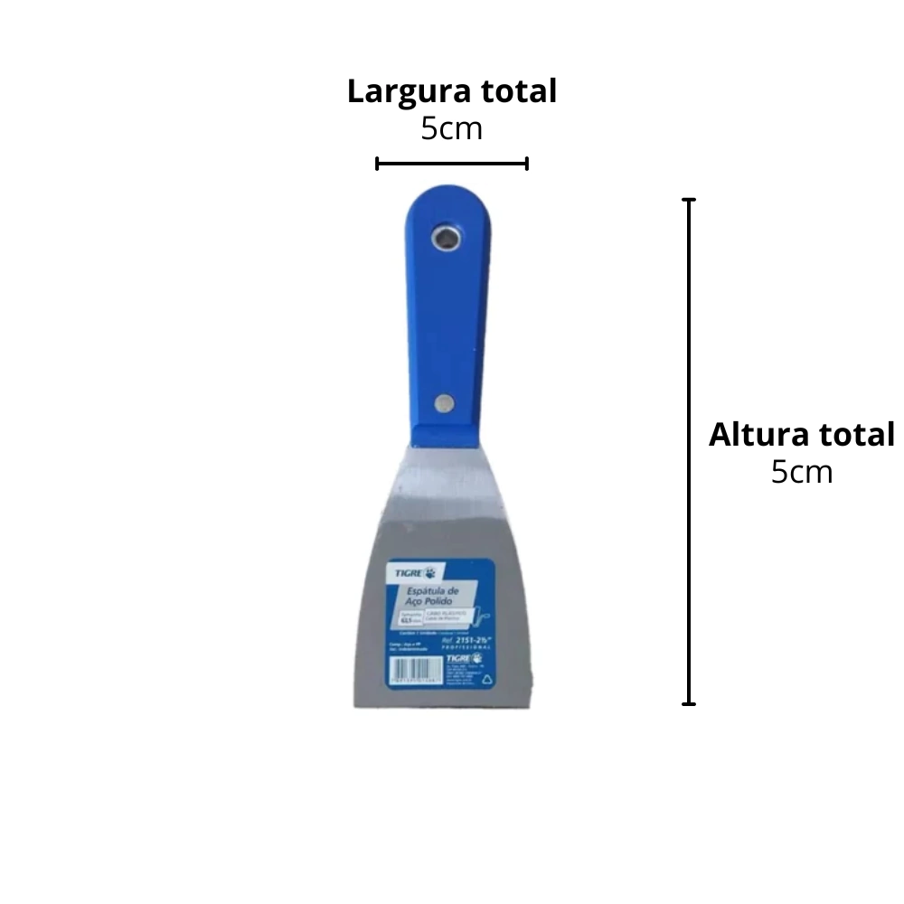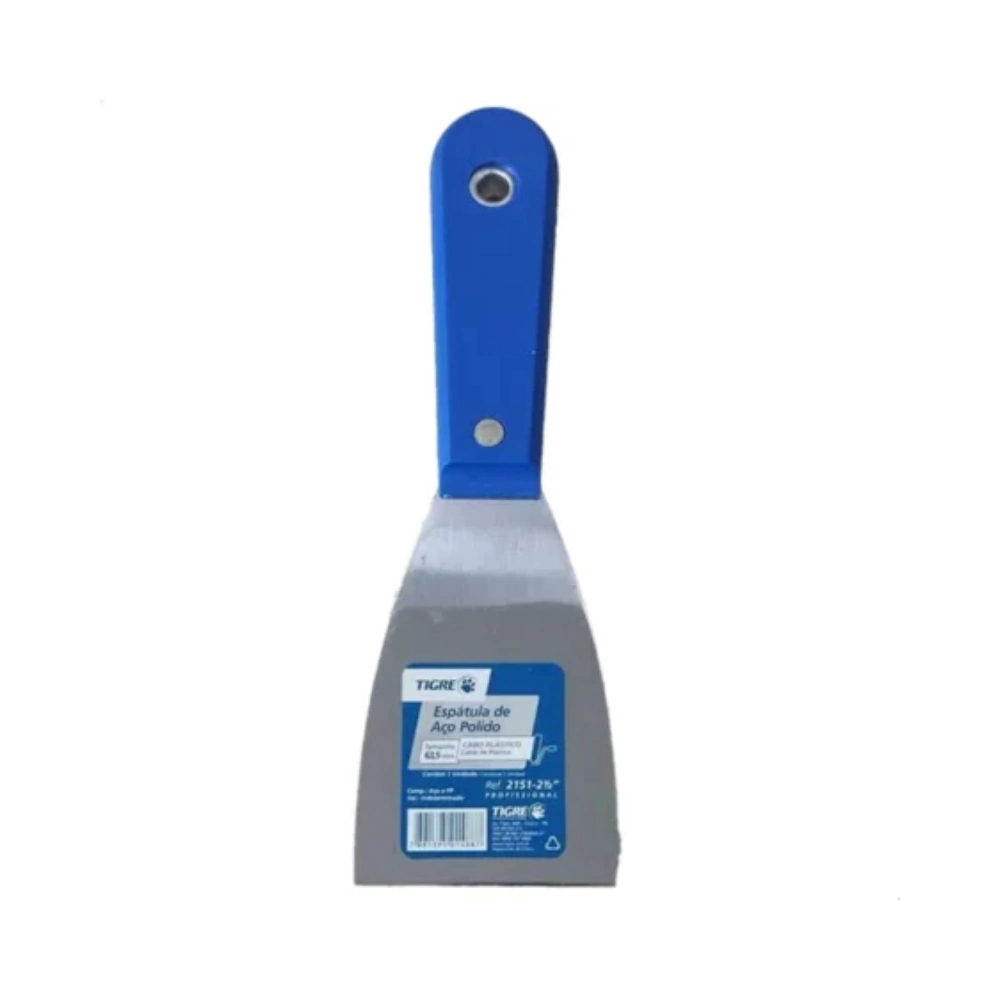 A espátula de aço polido é uma ferramenta prática e resistente, ideal para trabalhos de acabamento, raspagem e aplicação de massas ou selantes em diversas superfícies.
