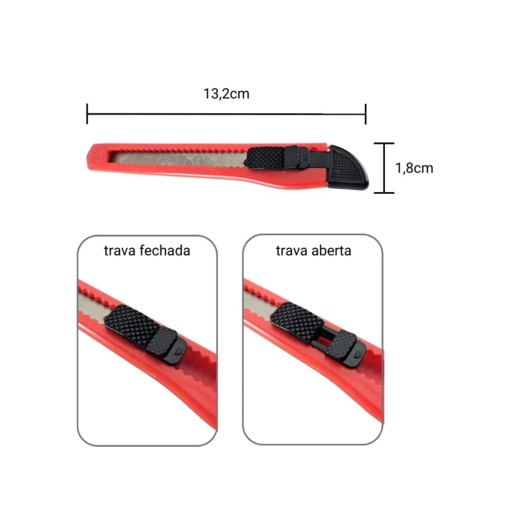 O Estilete Pequeno 9mm é ideal para cortes delicados e precisos em materiais leves como papel, cartolina, plástico fino e fitas adesivas. Compacto e leve, é uma ferramenta indispensável para uso em escritórios, escolas, artesanato e reparos rápidos.
