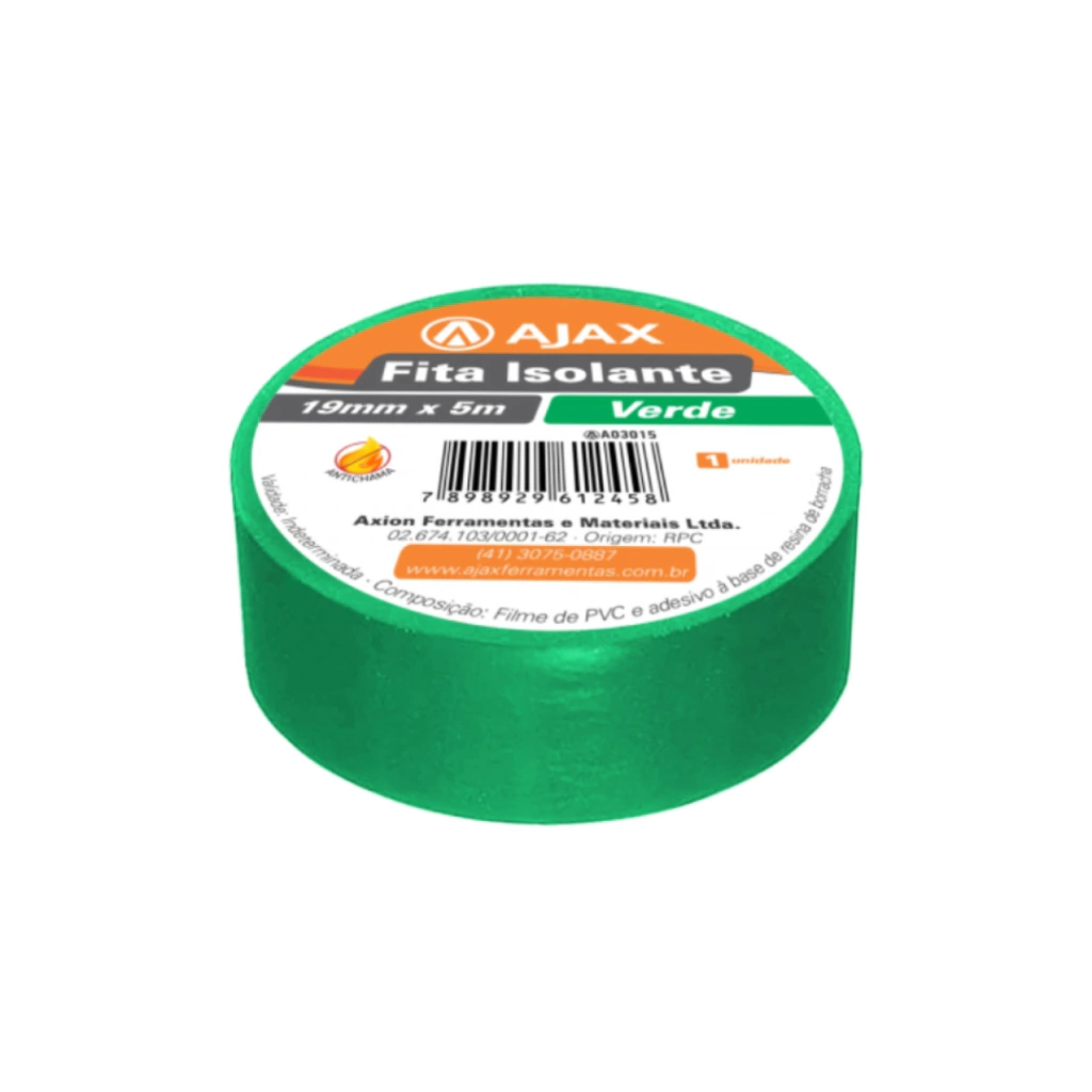 A fita isolante verde Ajax 19mm x 5m x 130 mic é indicada para isolação elétrica e identificação de cabos em instalações residenciais, comerciais e industriais. Sua cor facilita a organização e diferenciação dos fios, garantindo mais segurança e praticidade no trabalho.