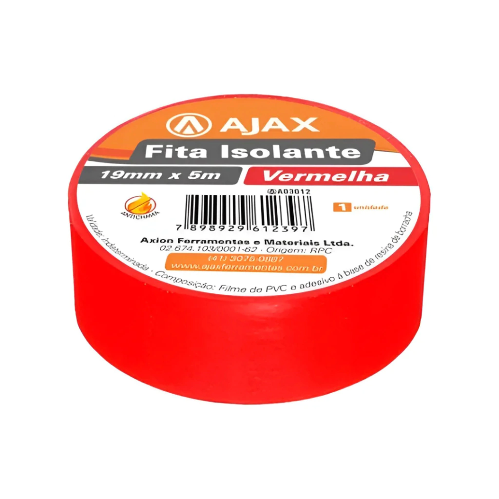 Fita isolante Ajax em PVC com adesivo de borracha, ideal para uso elétrico, automotivo e doméstico.