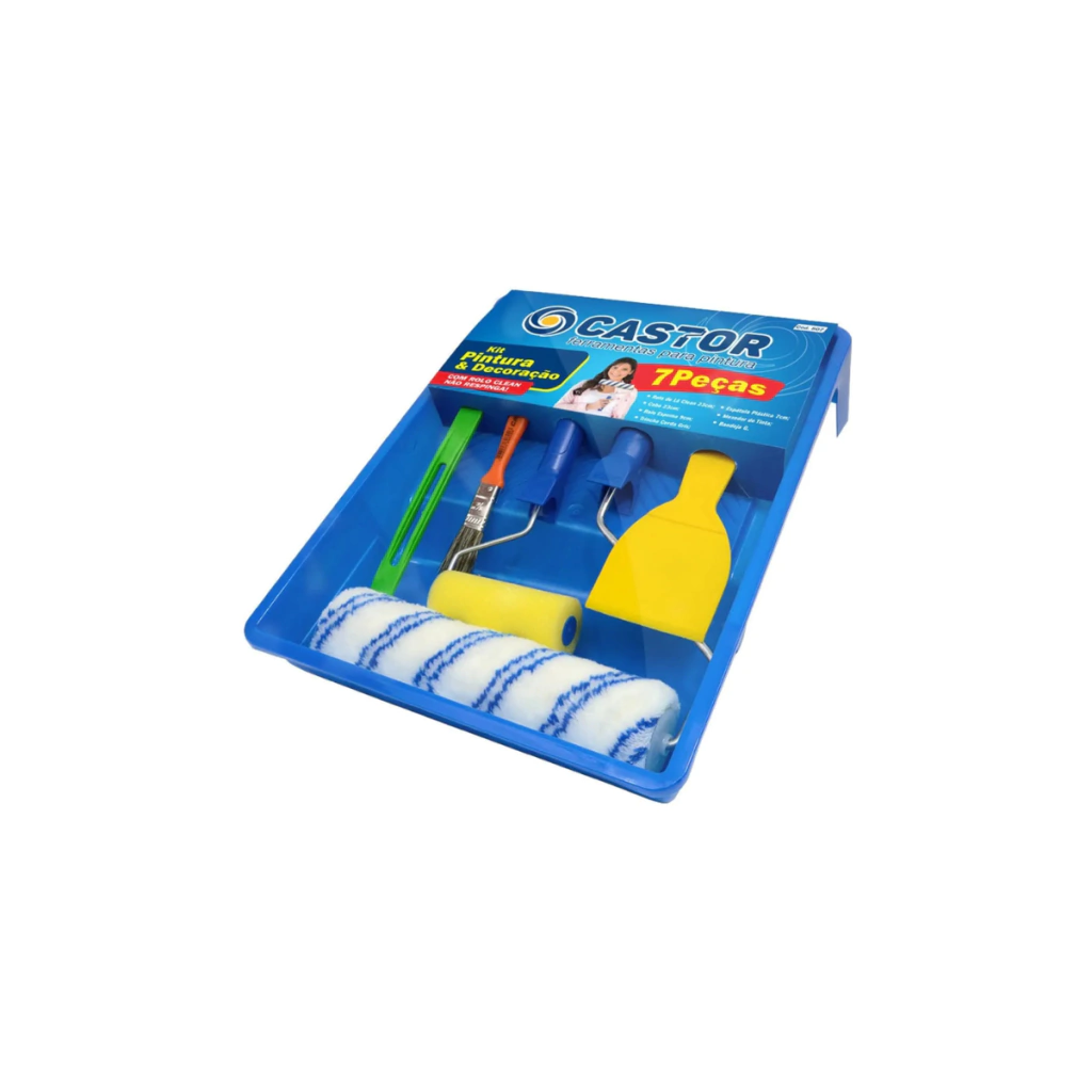 O Kit Pintura e Decoração Castor 807 é a solução prática e econômica para quem deseja pintar e retocar ambientes com eficiência. Ideal para uso doméstico ou profissional, ele inclui ferramentas essenciais para diferentes tipos de pintura, proporcionando praticidade e bom acabamento. O kit acompanha rolo de espuma para superfícies lisas, rolo Clean para áreas maiores, trincha para detalhes e cantos, além de espátula plástica, mexedor de tinta e bandeja tamanho G. Um conjunto completo para facilitar a aplicação de tinta e materiais em diversas superfícies.
