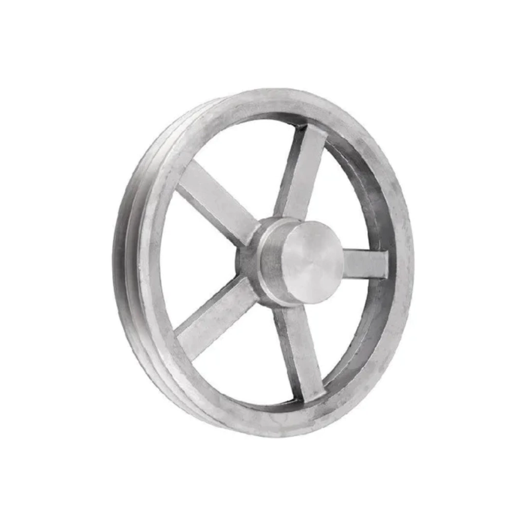Fabricada em alumínio de alta resistência, combina leveza, durabilidade e resistência à corrosão. Seus dois canais permitem o uso simultâneo de múltiplas correias, aumentando a capacidade de transmissão de potência e assegurando desempenho confiável em aplicações contínuas.