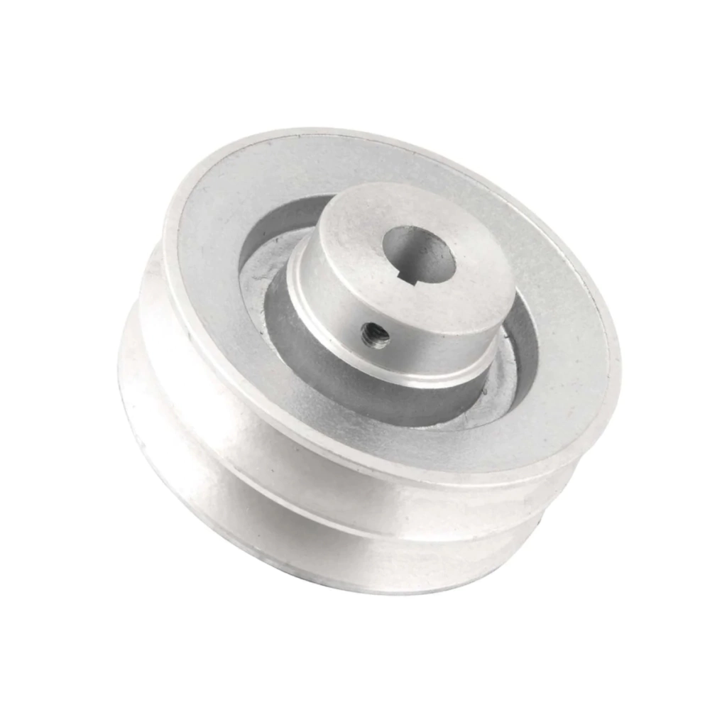 A polia de alumínio 2 canais perfil B de 4.1/2" é indicada para sistemas de transmissão mecânica que necessitam de eficiência, resistência e leveza. Produzida em alumínio de alta qualidade, oferece menor peso em comparação a polias de ferro, contribuindo para a redução do esforço nos eixos e rolamentos.