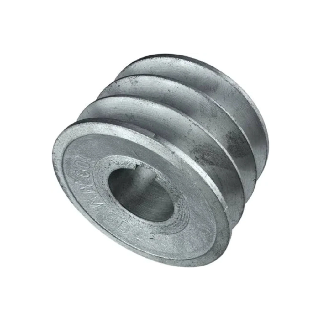 A polia de alumínio 3 canais perfil A de 65 mm é indicada para sistemas de transmissão mecânica que exigem leveza, eficiência e durabilidade. Fabricada em alumínio de alta qualidade, proporciona menor peso em relação às polias de ferro, reduzindo esforços sobre eixos e rolamentos.