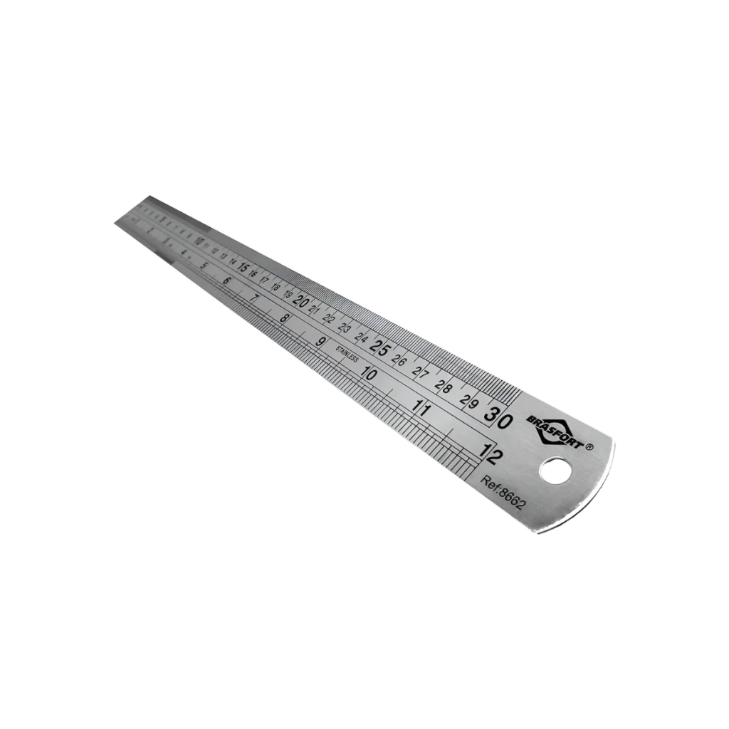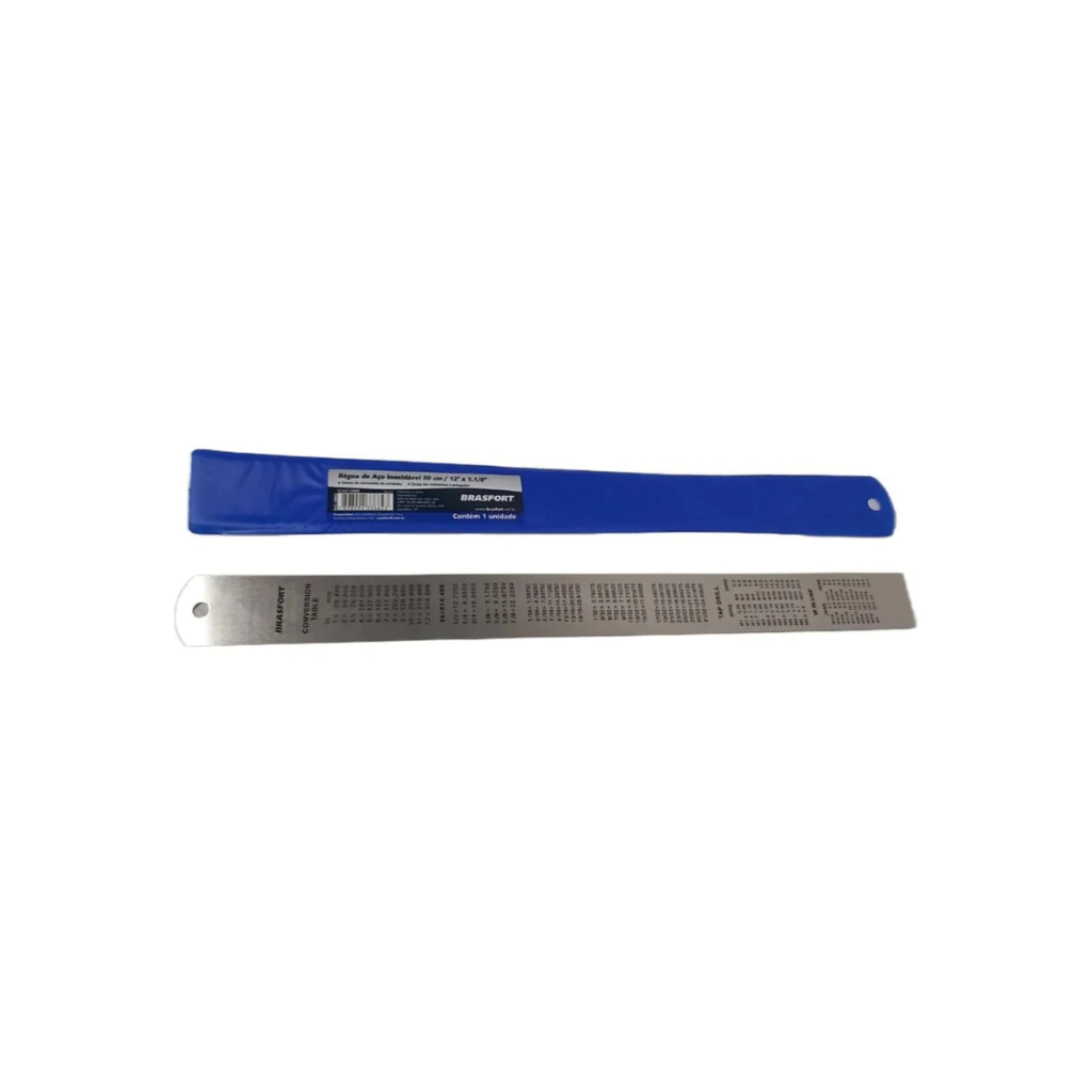 A Régua de Aço Inox BRASFORT, com 30 cm de comprimento, é indicada para medições precisas em escritórios, escolas, estúdios de desenho e ambientes industriais. Seu material em aço inox garante durabilidade, resistência à corrosão e uso prolongado sem deformações.