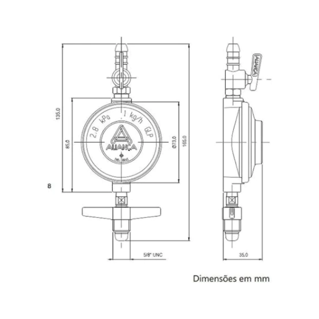O Regulador para Gás 504/01 da Aliança, com manômetro integrado, é ideal para uso doméstico em sistemas de baixa pressão, como fogões e fornos alimentados por GLP (gás de botijão). Ele reduz a pressão interna do botijão (cerca de 7 kgf/cm²) para a pressão ideal de consumo em equipamentos domésticos – 2,8 kPa (ou 280 mmca). Sua vazão de até 1 kg/h de gás torna este regulador compatível com diversos modelos de fogões e cooktops residenciais de 4, 5 ou 6 bocas. Com o manômetro, você pode monitorar a pressão do gás com facilidade e maior segurança.