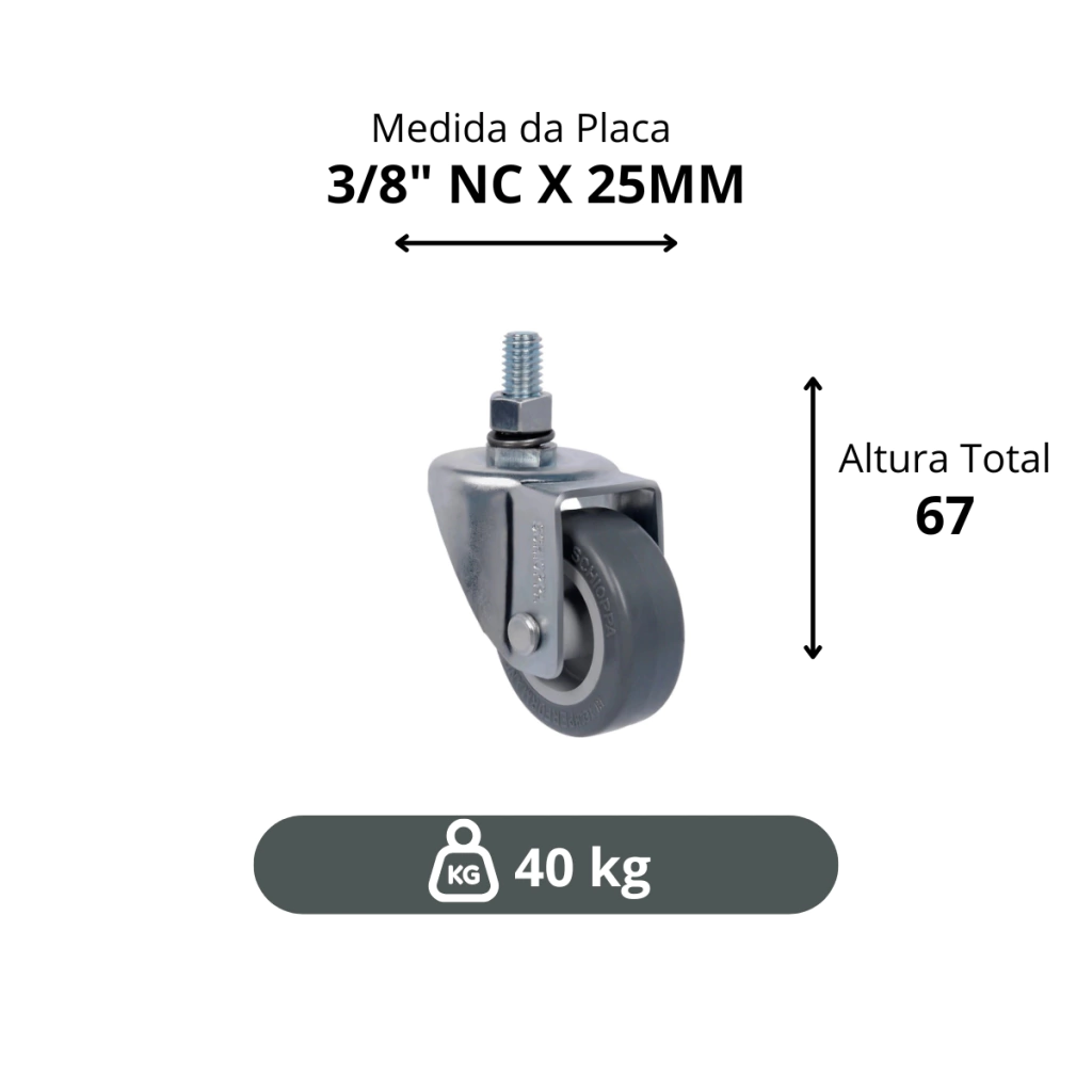 | Diâmetro da Roda | 2 polegadas (42 mm) |