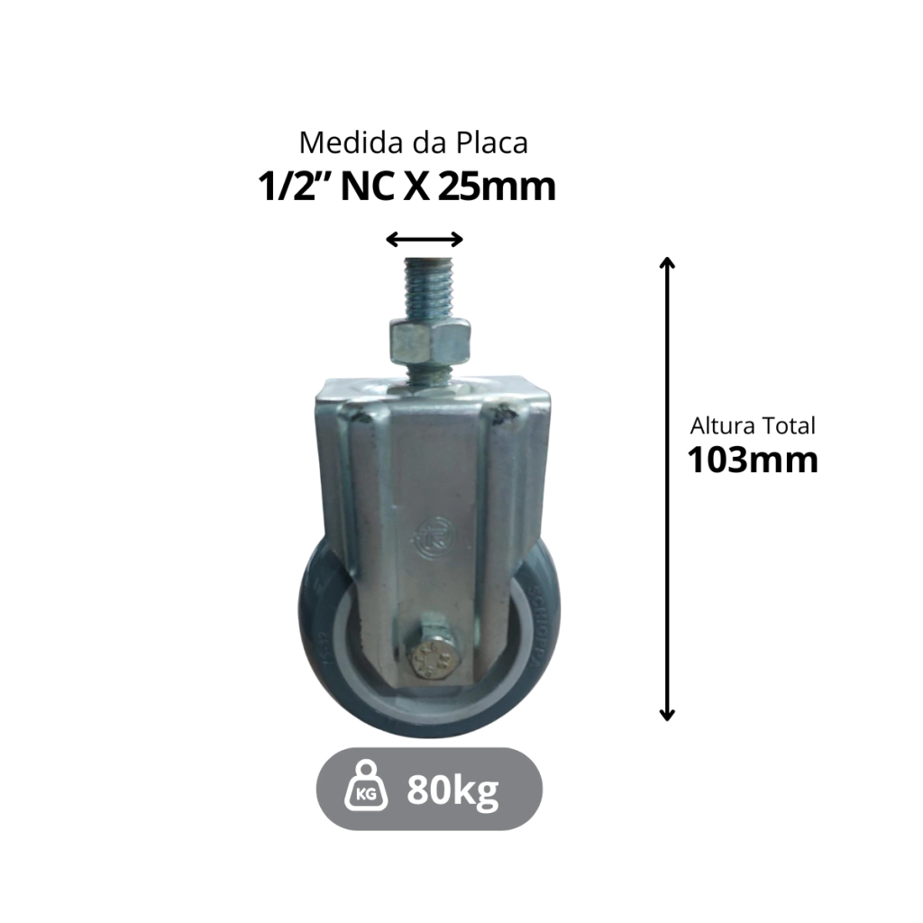 O Rodízio Fixo 3" com Espiga combina a robustez do garfo Tellure com a qualidade da roda Schioppa modelo FLE 312 BP. Ideal para aplicações industriais, móveis comerciais, carrinhos, bancadas e estruturas que exigem resistência e movimentação linear. Sua estrutura suporta até 80kg por unidade, com roda de borracha termoplástica que proporciona deslocamento suave, silencioso e sem danificar o piso. A espiga facilita a instalação em superfícies com furo compatível, oferecendo praticidade e segurança.