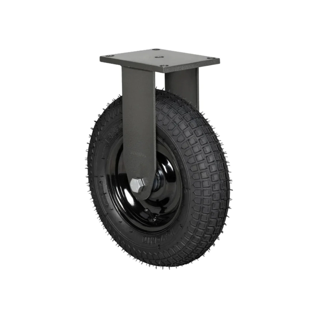 Trata-se de um modelo fixo, projetado para manter direção constante, ideal para uso como rodízio de apoio ou para compor conjuntos de 2 fixos + 2 giratórios em carrinhos e plataformas.