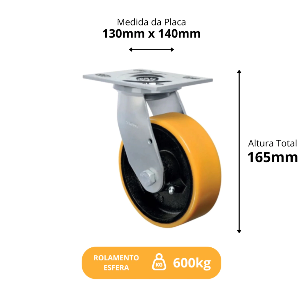 | Dimensões principais | Roda: 5" (diâmetro) x 20 mm (largura) |