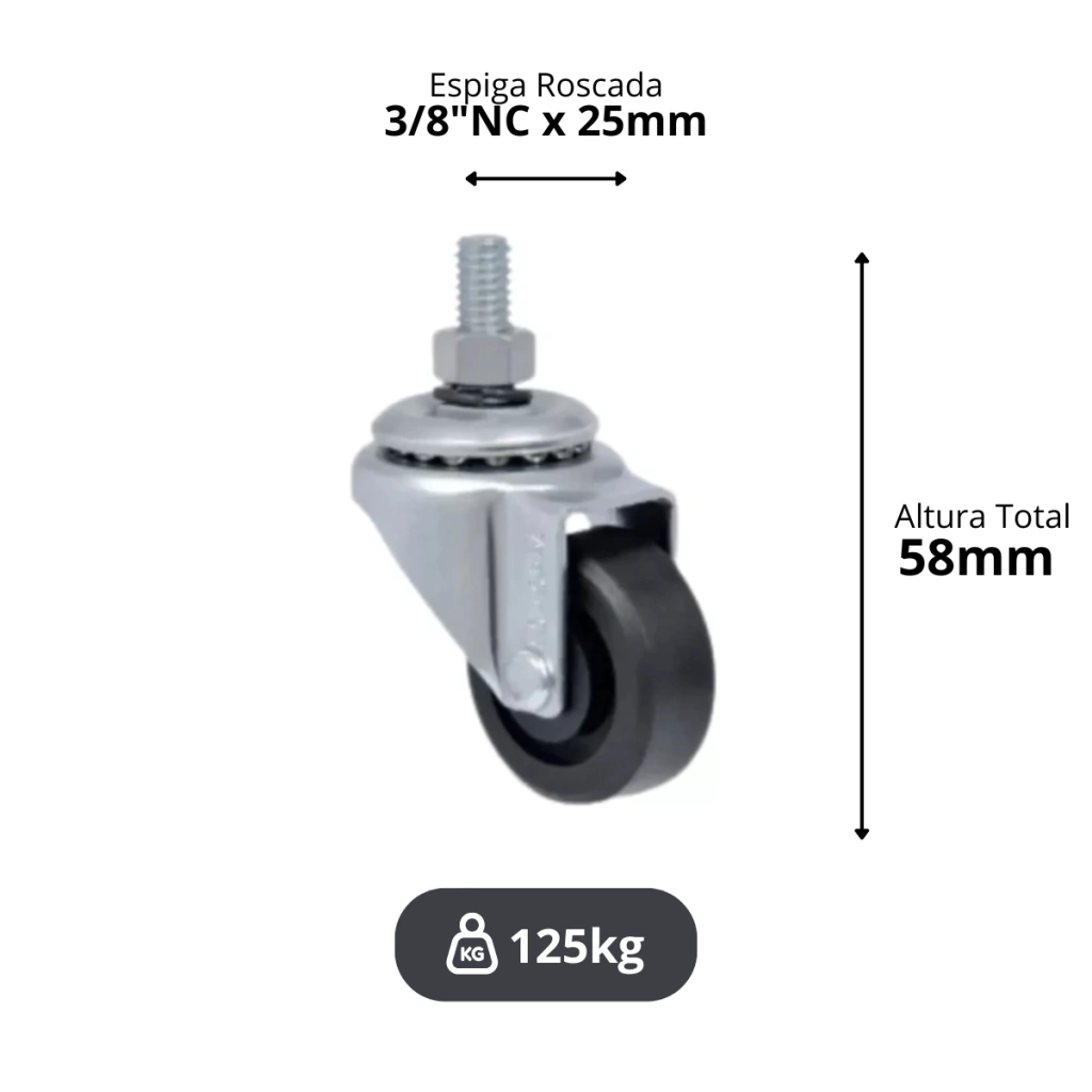 | Material | Roda em nylon (poliamida 6.6) reforçado com fibra de vidro |