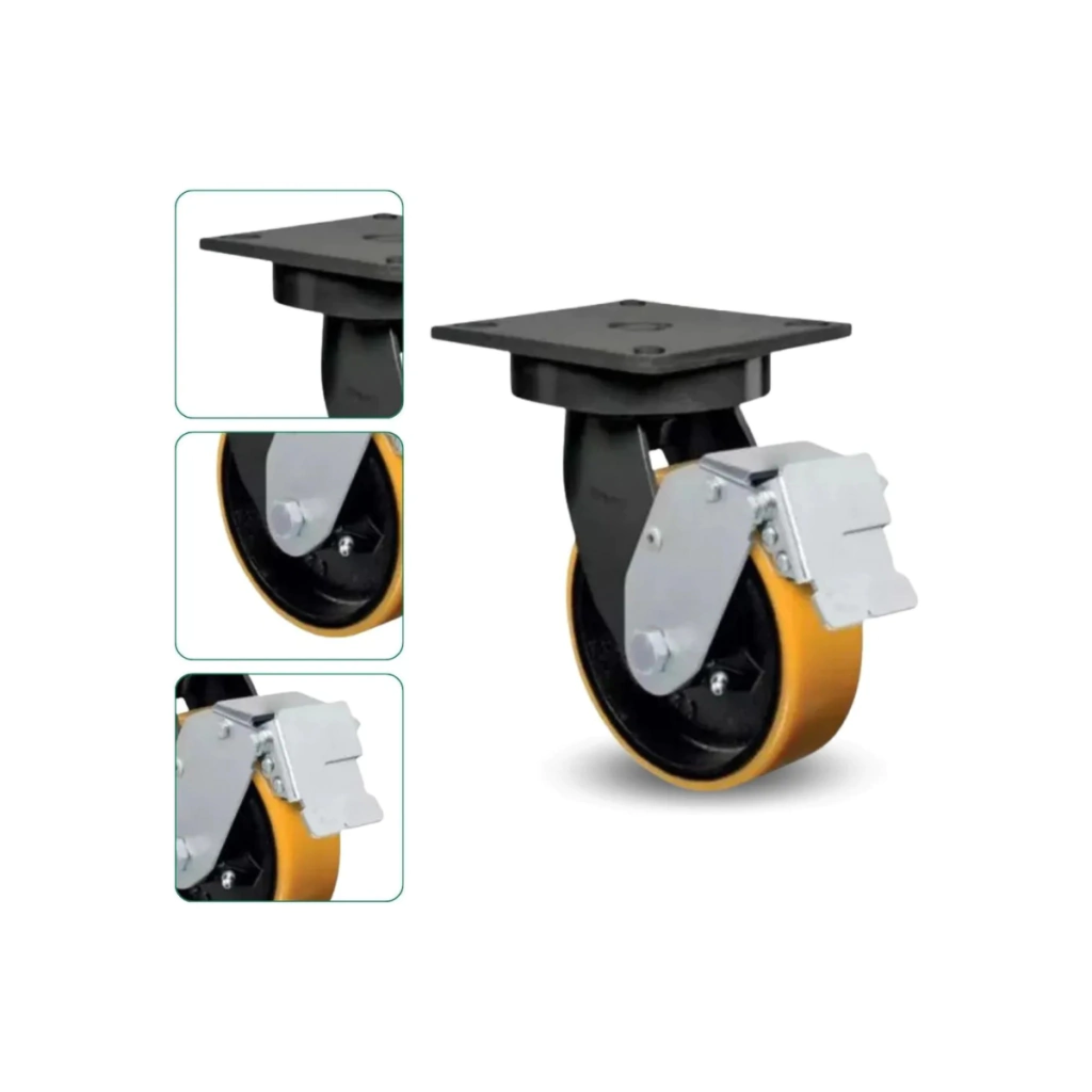 Produto robusto, indicado para carrinhos industriais, plataformas, racks e equipamentos móveis de alto desempenho.