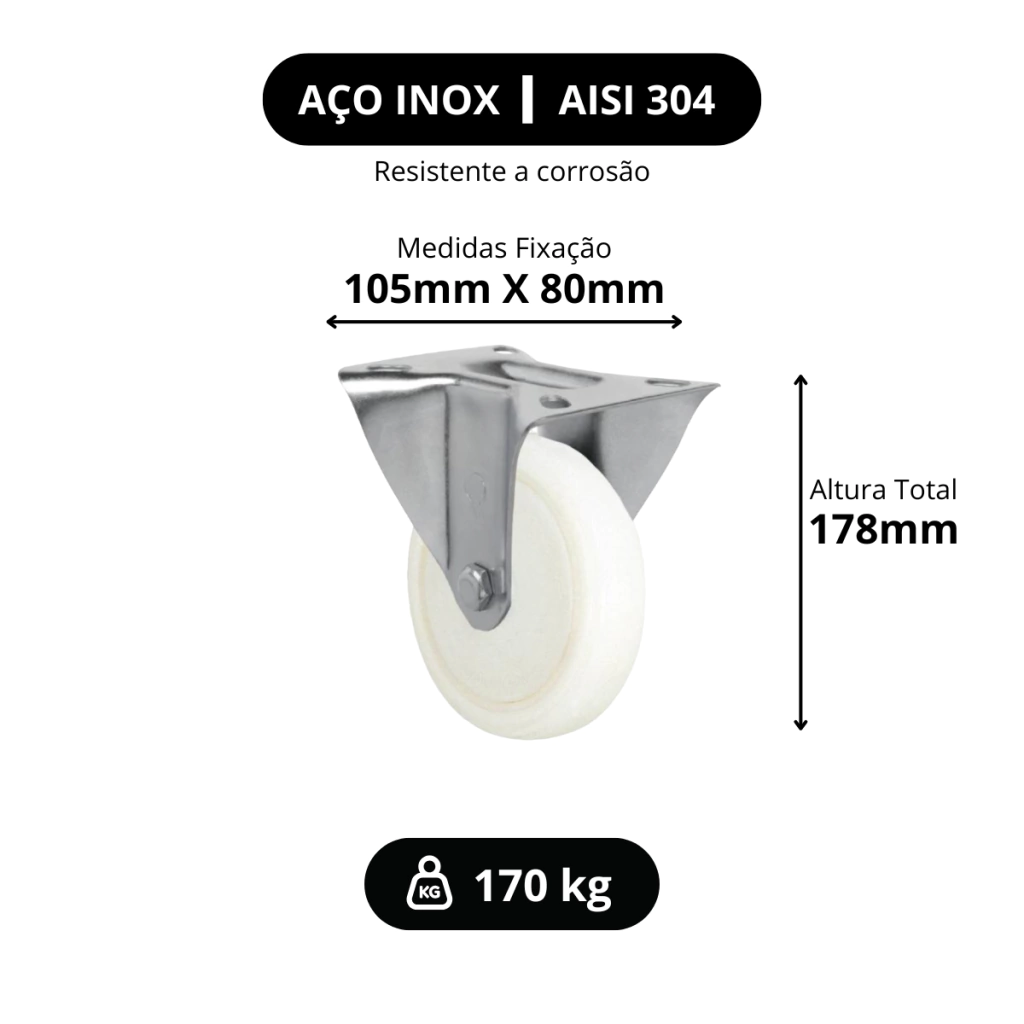 Descubra a robustez e eficiência do Rodízio Fixo Inox 6 Polegadas FL 612 NTE da Schioppa! Fabricado em INOX AISI 304, é resistente à corrosão e ideal para ambientes industriais e comerciais. Com capacidade de carga de até 170kg, oferece uma movimentação suave e segura graças ao seu sistema com rolamento de esferas e calota protetora. Uma escolha confiável para quem precisa de qualidade e durabilidade em aplicações pesadas.