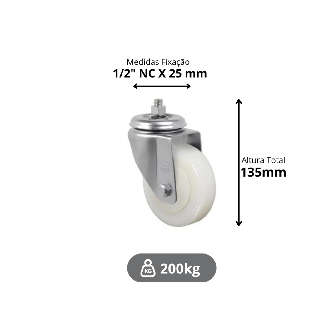 | Tipo | Rodízio Giratório com Espiga Com Calota |