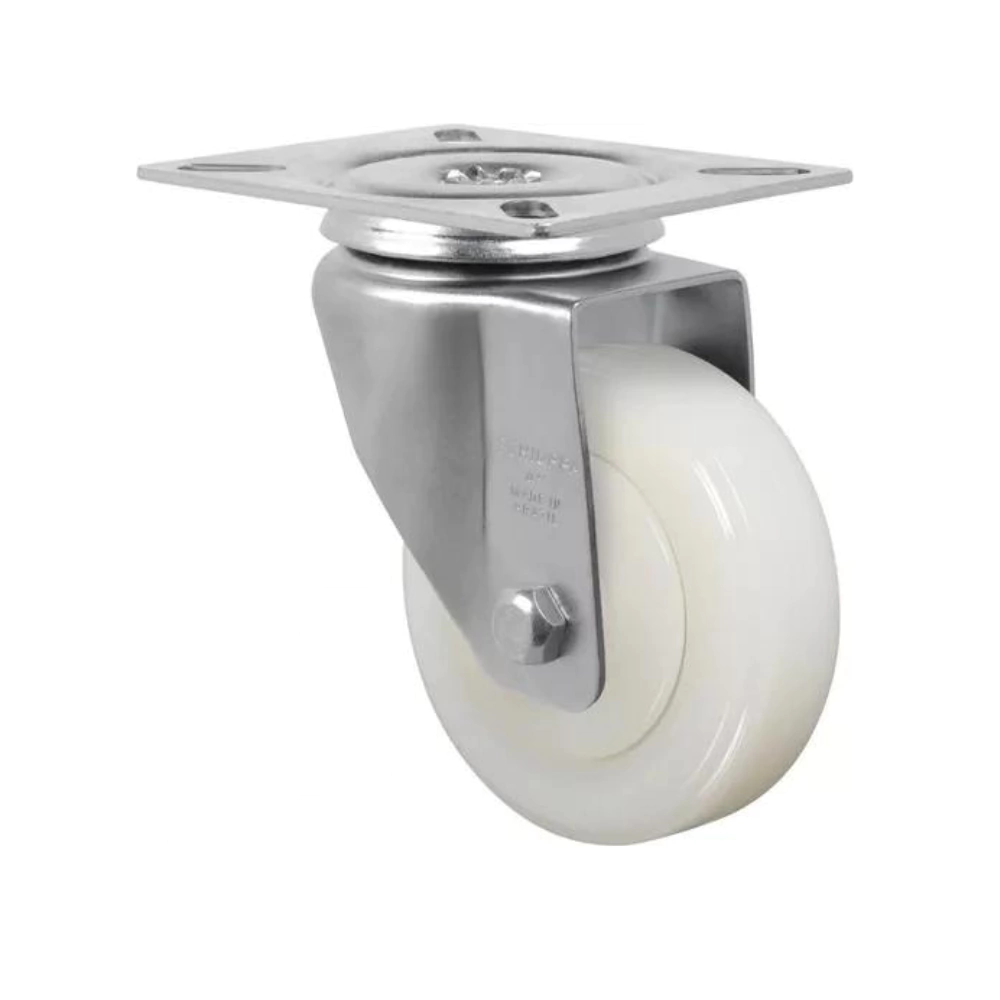 O rodízio giratório GL 614 NTE da Schioppa é a solução ideal para movimentação de cargas pesadas com eficiência e segurança. Equipado com roda de Nylon Técnico (Poliamida 6), este modelo oferece leveza, alta resistência mecânica e excelente desempenho em ambientes úmidos ou com exposição a substâncias como óleos, graxas, sais e ácidos leves. Sua dureza de 75 Shore D e faixa de operação de -40ºC a +110ºC permitem ampla aplicação em ambientes industriais exigentes. O rolamento de esferas proporciona suavidade na rotação, enquanto a calota confere acabamento mais limpo e proteção adicional. O garfo é fabricado em chapa estampada com acabamento zincado, com cabeçote de dupla pista de esferas, e eixo da roda parafusado, garantindo resistência estrutural e durabilidade prolongada.