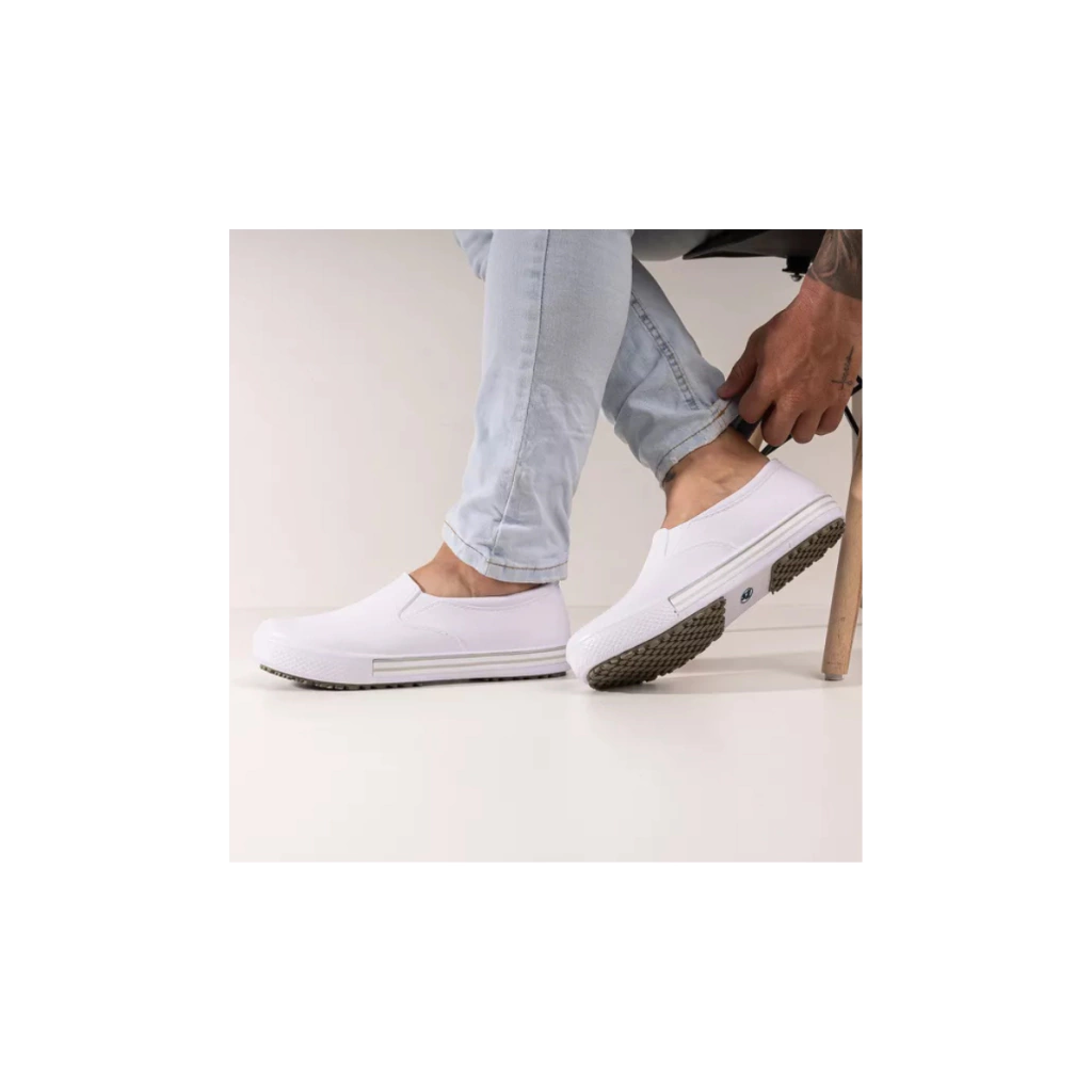 O Tênis Antiderrapante BB 80 Branco é ideal para profissionais que atuam em ambientes que exigem segurança, higiene e conforto. Produzido com tecnologia moderna, o calçado possui solado de borracha antiderrapante (sintética e natural), oferecendo excelente aderência em superfícies escorregadias como pisos cerâmicos ou metálicos. O modelo BB 80 conta com cabedal com aditivos antimicrobianos, que combatem bactérias e previnem odores, além de aumentar a durabilidade do calçado. O conforto também é garantido pelo sistema de absorção de impacto no calcanhar, fundamental para quem passa longos períodos em pé. Fácil de limpar, pode ser desinfetado com Hipoclorito de Sódio, tornando-o ideal para ambientes hospitalares, cozinhas industriais, indústrias alimentícias e muito mais.