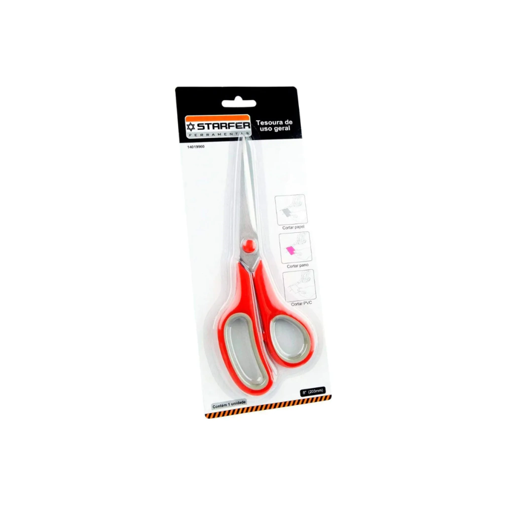 A Tesoura Starfer Corte Fácil 8" foi desenvolvida para oferecer precisão e praticidade em atividades domésticas, escolares e profissionais. Seu tamanho de 8 polegadas garante um manuseio confortável, permitindo cortes firmes e controlados em diferentes tipos de materiais leves.