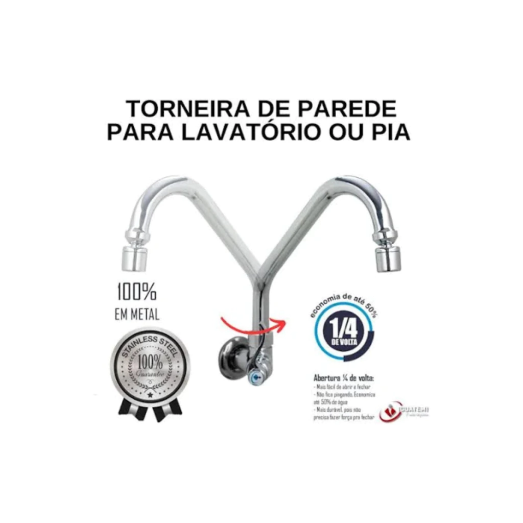 A torneira de parede Iguatemi C-70 combina design moderno, resistência e praticidade, sendo ideal para cozinhas, pias e lavatórios. Seu mecanismo de acionamento 1/4 de volta oferece abertura e fechamento rápidos, garantindo economia de água e maior durabilidade. A bica móvel com rotação de 360° facilita o direcionamento do jato, permitindo mais flexibilidade no uso. O arejador fixo proporciona um fluxo uniforme e bem arejado, evitando respingos e otimizando o consumo de água. Fabricada totalmente em metal cromado de alta resistência, a C-70 alia estética sofisticada a uma construção durável, resistente à corrosão e fácil de limpar. Produto com excelente custo-benefício e instalação simples.