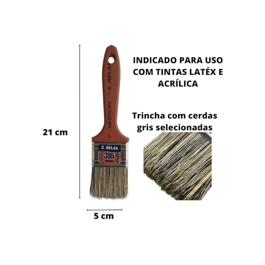 A trincha média de 2 polegadas da Atlas é ideal para aplicações com tintas latex e acrílicas, garantindo um excelente acabamento em superfícies variadas. Com cerdas gris selecionadas, oferece ótima resistência e durabilidade, além de uma aplicação uniforme da tinta acrílica e latex. Este pincel para pintura é indicado para profissionais e entusiastas que buscam uma ferramenta com excelente custo-benefício. Sua construção permite maior controle e precisão, facilitando retoques e pintura em áreas médias. Recomendado para quem precisa de uma trincha prática e eficiente para pinturas residenciais e comerciais, com qualidade garantida pela marca Atlas. Produto vendido unitário, fácil de manusear e compatível com diversas marcas de tinta.